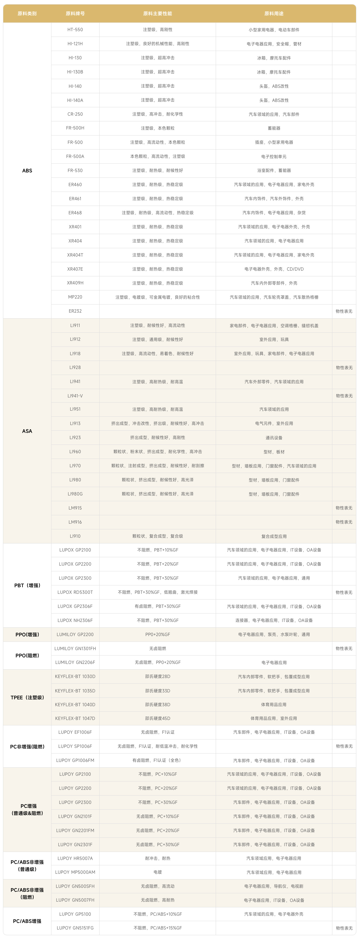 - PC/ABS非增强(普通级)