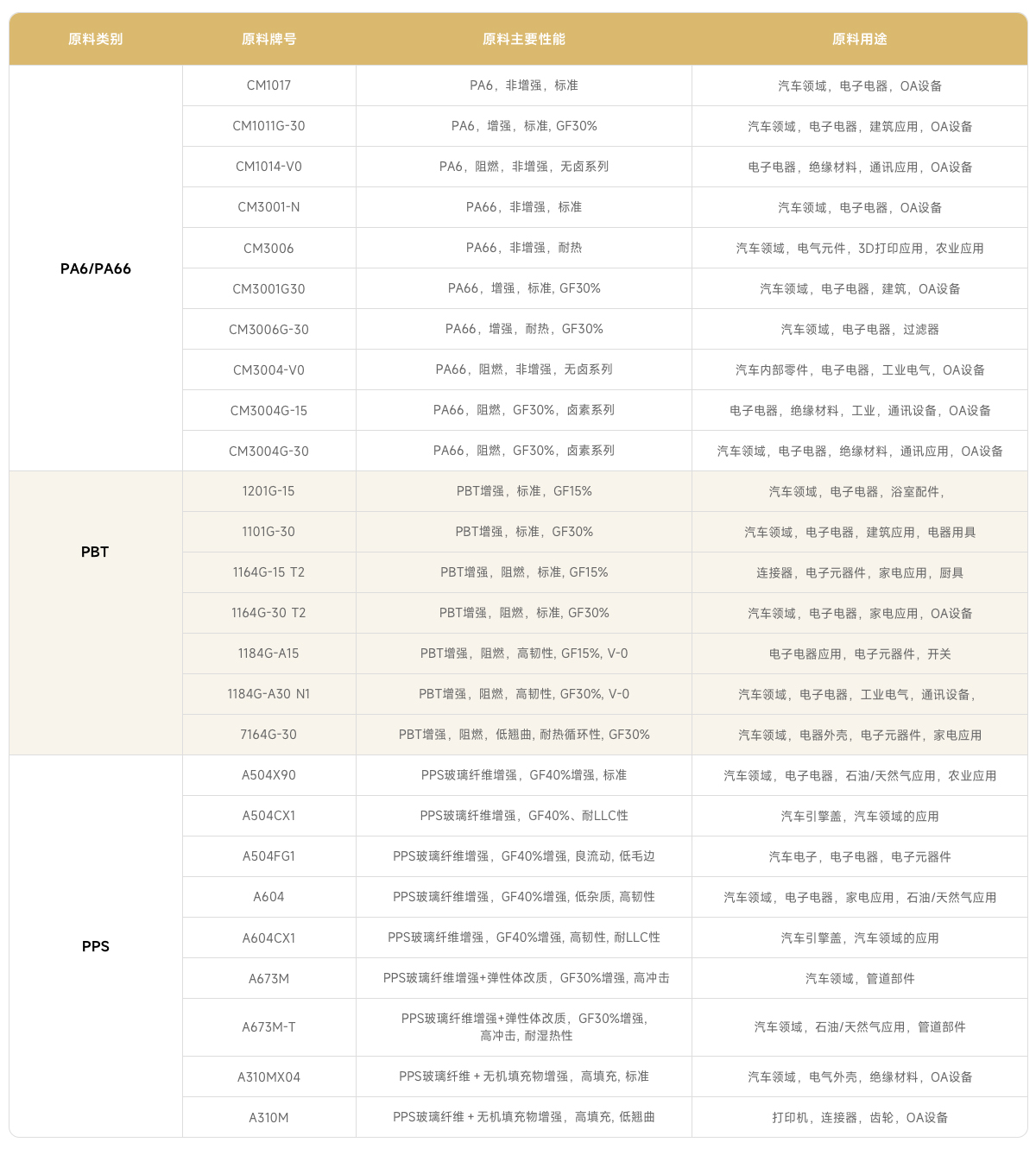 原料类别